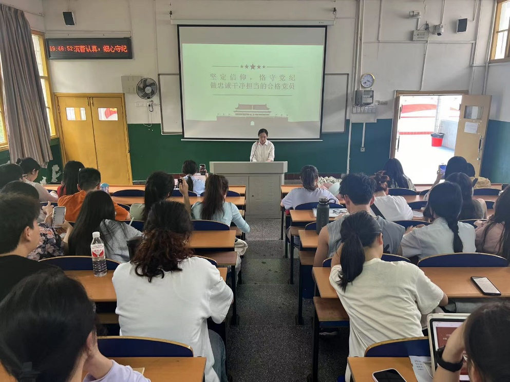 在正式学习之前,文学与新闻传播学院杨帆书记应邀发表了动员讲话。她强调,党员同志们要深刻认识修订《条例》的重要意义。要深刻领悟修订《条例》,促进全党深刻领悟“两个确立”的决定性意义、做到“两个维护”;是贯彻落实习近平新时代中国特色社会主义思想的具体行动;是坚持问题导向,用严明的纪律管全党治全党的现实需要;是总结从严管党治党经验、实现制度与时俱进的实践要求。