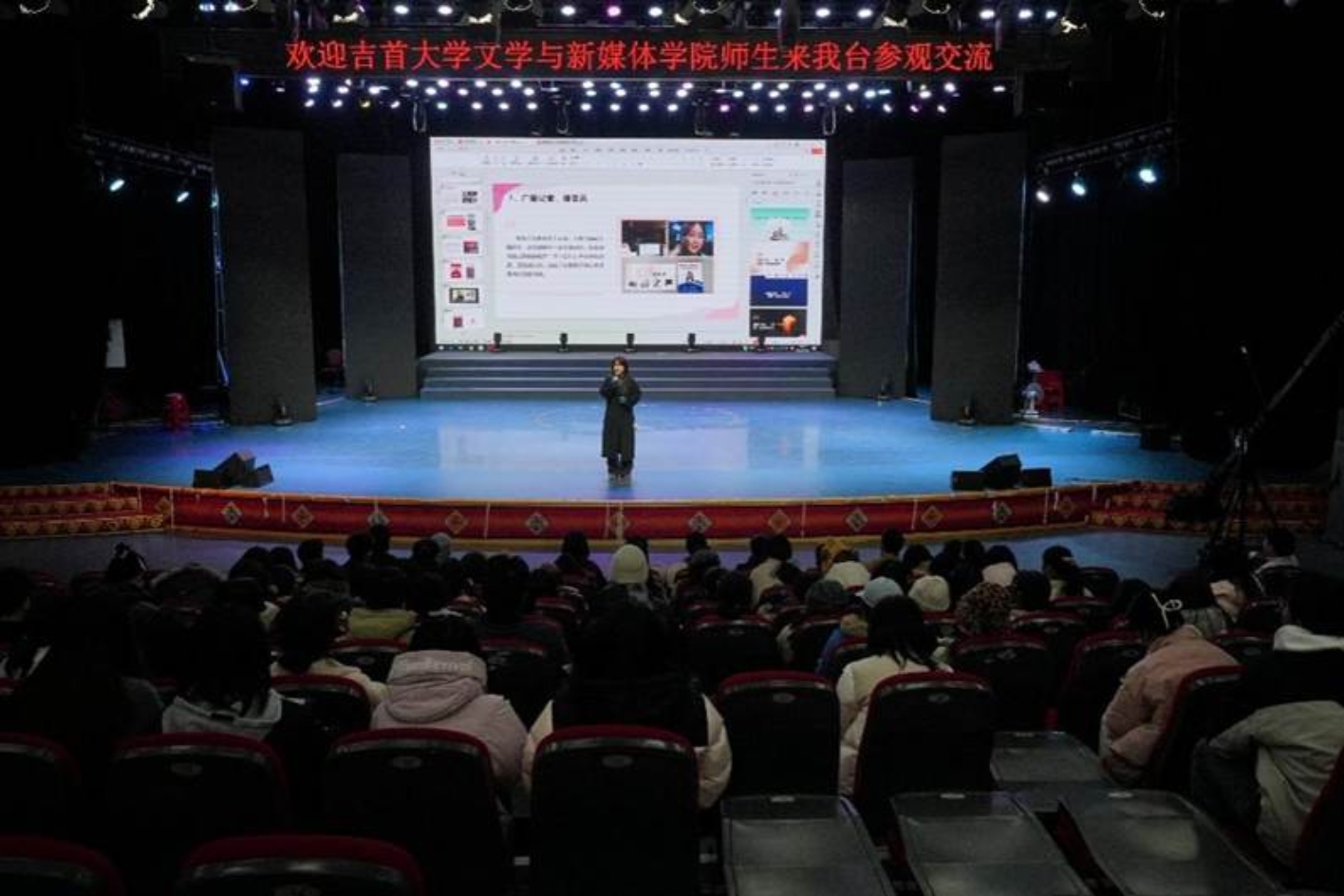 本网讯(通讯员 杨甜甜 骆晨露)12月23日,williamhill英国2023级新闻班全体同学,在播音与主持任课教师李兰的带领下,前往湘西州广播电视台开展专业课程见习活动。