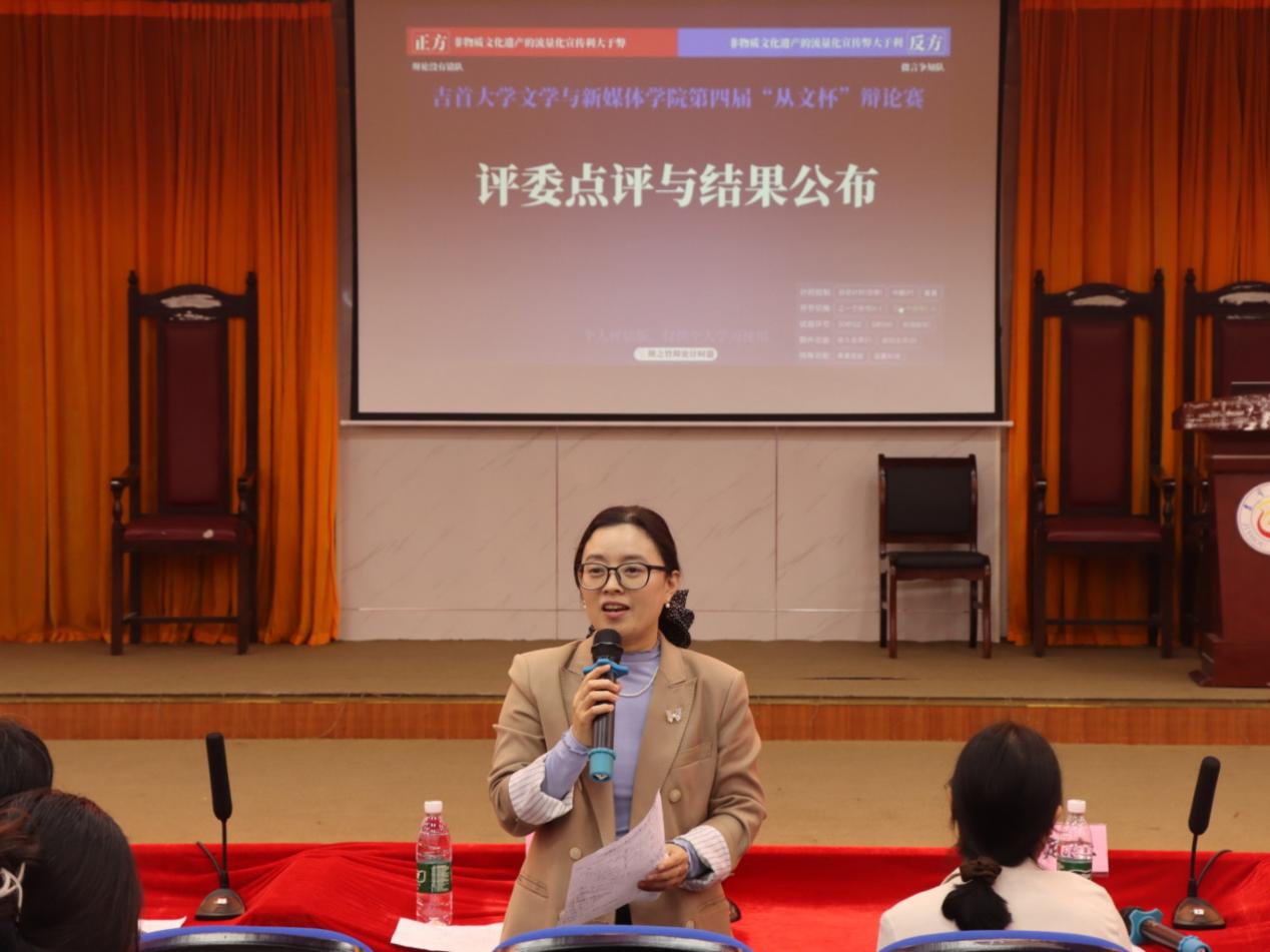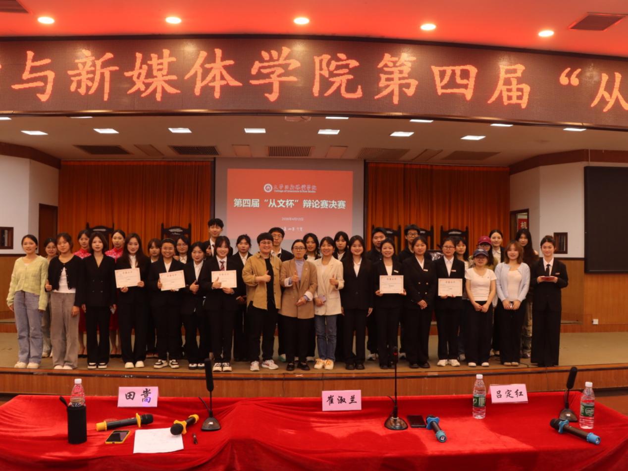 本网讯(通讯员 刘美玲 石康裕 刘希雅 邓翕月)4月12日下午,学院第四届 “从文杯” 辩论赛决赛在砂子坳校区模拟法庭如期举行。经过层层选拔晋级的四支队伍,围绕“AI 迅猛发展抑制 / 提升人类创造力”与“非物质文化遗产流量化宣传利大于弊 / 弊大于利”两大时代议题,展开了精彩激烈的思辨交锋与深度论辩。本次赛事邀请了田嵩老师、崔淑兰老师、吕定红老师任本次赛事评委。