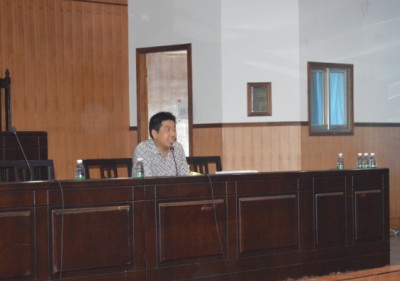 图为 我院党总支书记田茂军教授在讲座上讲话