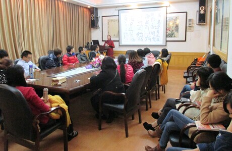本网讯( 赵燕 ) 27日晚上,在我校砂子坳校区影视鉴赏室,湘西州书法家协会会员,湘西州美术家协会会员,我院2013级在读研究生向玉娥为我院研究生带来了一场主题为“中国书法艺术”的学术讲座。