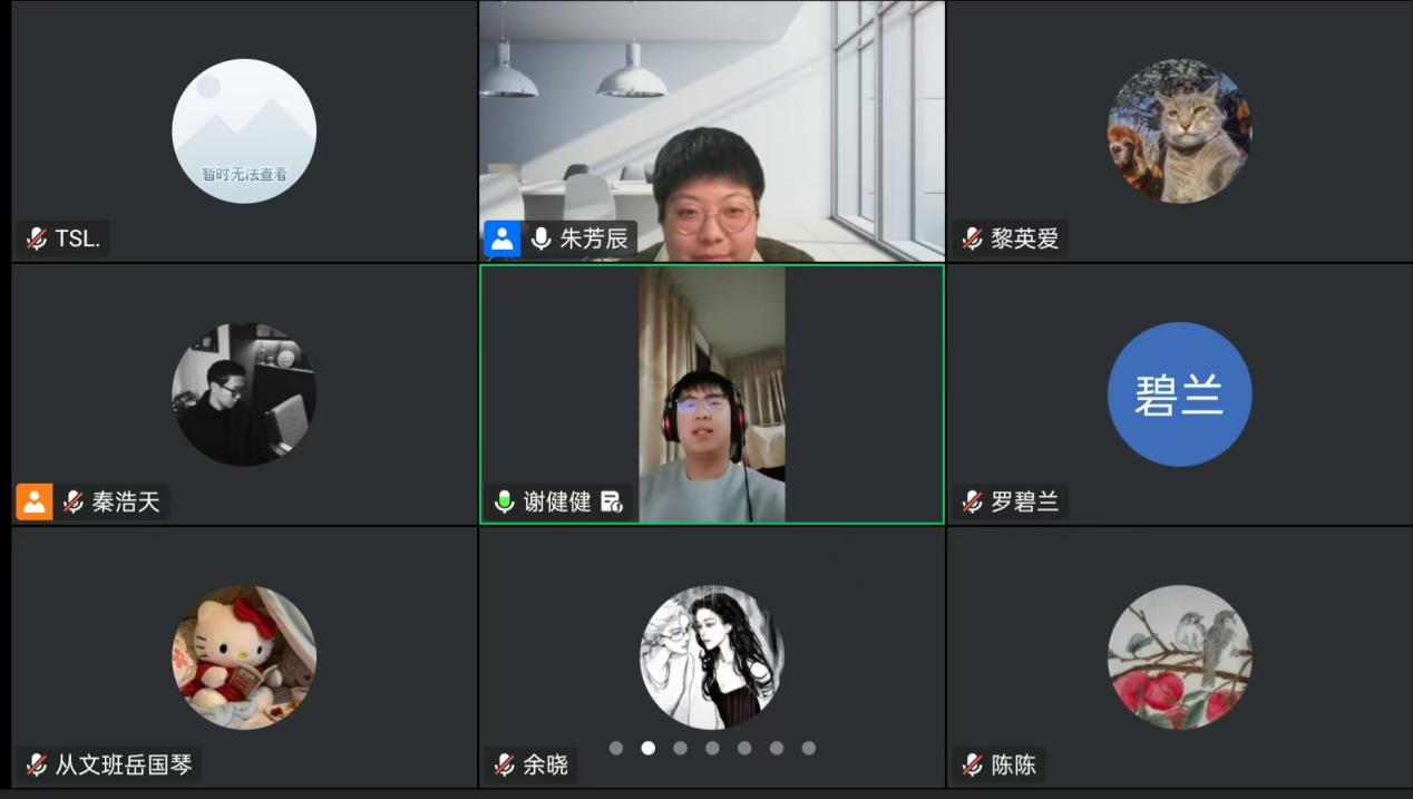 提问环节氛围热烈,学子们踊跃开麦交流,谢健健逐一耐心解答疑问。在随后的作品评鉴环节中,谢健健针对同学们提前提交的5至6组诗歌作品进行了细致点评,搭建起了作家与学子间的良性创作反馈渠道。自由对话环节中,参与者们围绕主题及作品评鉴内容展开延伸交流,交流思辨间碰撞出鲜活的思想火花。