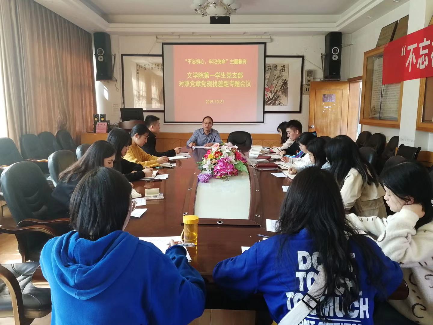 本网讯(通讯员 石新月)10月31日中午,我院第一学生党支部开展“不忘初心、牢记使命”主题教育对照党章党规找差距专题会议。我院副院长彭广林出席会议,教职工党员及第一学生党支部全部党员参会。会议由第一学生党支部书记刘建新主持。