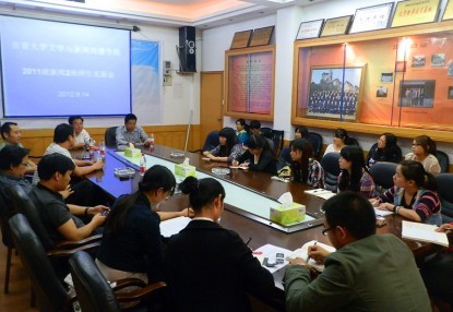 本网讯(通讯员 丁园园)9月14日晚,2011级新闻2班及2010级专升本学生师生见面会分别在我院影视鉴赏室和第一教学楼1105教室举行。